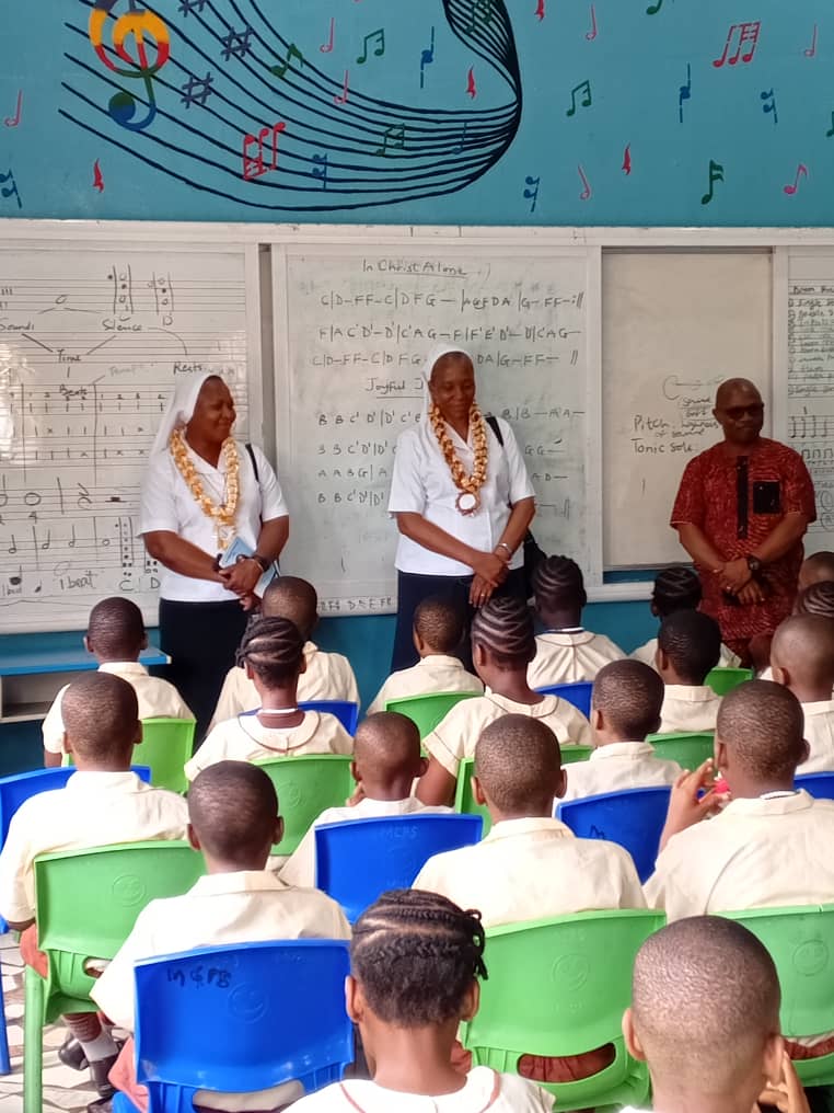 May 15th, 2025 marked a remarkable day in the school, the day the Provincial Superior (Rev. Sr. Josephine Enemoh) and her assistant (Rev. Sr. Jacinta Oye) officially visited the school . They were warmly welcomed by the management, Staff and pupil of the school in different languages.