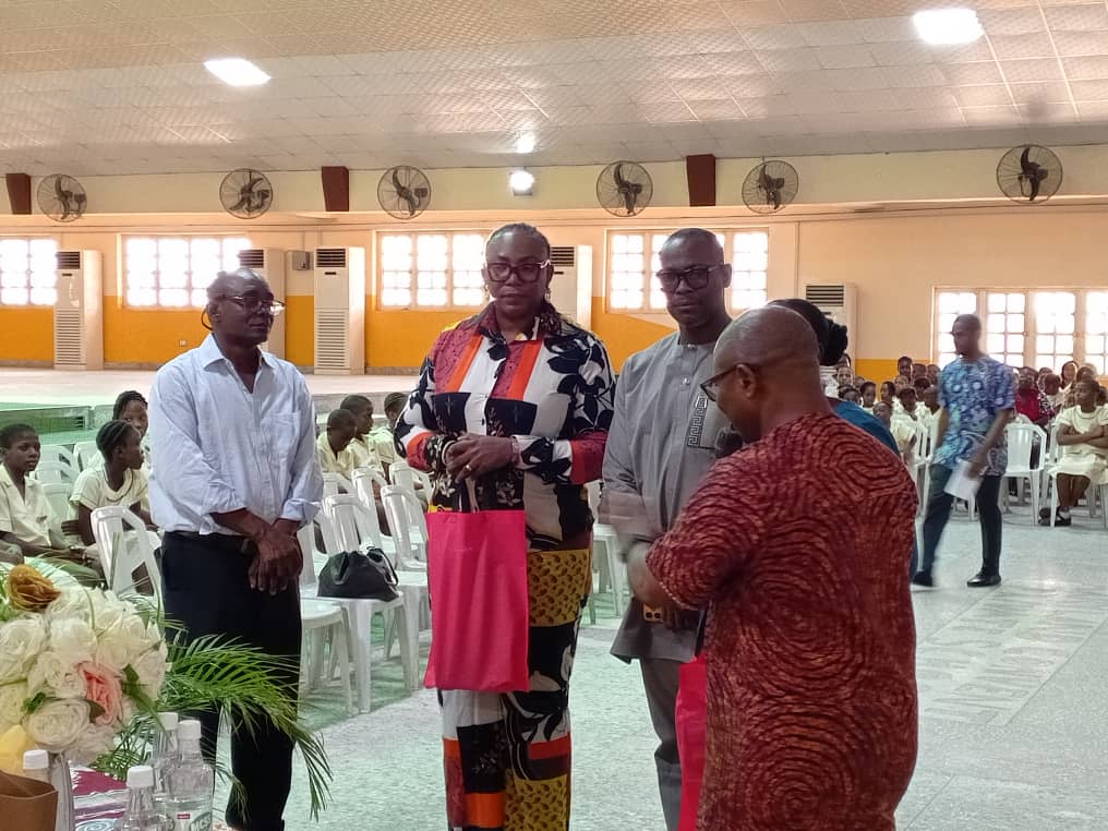 Afterwards, there was a gathering at the school hall to give them a befitting welcoming where various presentations (by the French club, pupils of nursery 2 and primary 1, red cross etc) and a performance (by the cultural troop). An interview was carried out with her by the press club.